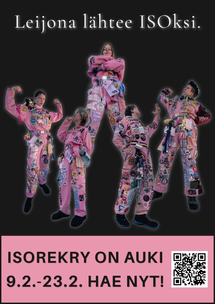 ISOrekry vuodelle 2026-2027 on nyt auki. Koneinsinöörikillassa haemme kahdenlaisia ISOja eli tuutoreita.
